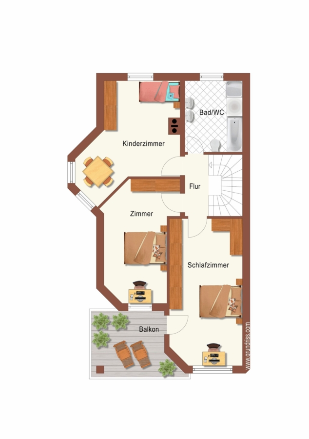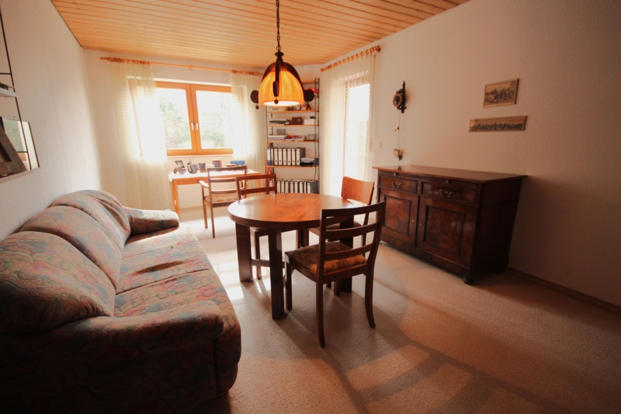 Durch eine Treppe gelangen Sie in das Obergeschoss. Auf dieser Ebene befindet sich ein Tageslichtbad mit Badewanne und Dusche. Zudem finden Sie hier drei Zimmer, welche Sie nach Ihren Vorstellungen gestalten können. Aktuell werden diese als Schlafzimmer, Büro und Gästezimmer genutzt. Von zwei Zimmern aus gelangen Sie auf den schönen und sehr großen Balkon mit Blick auf die Stadt wertingen.