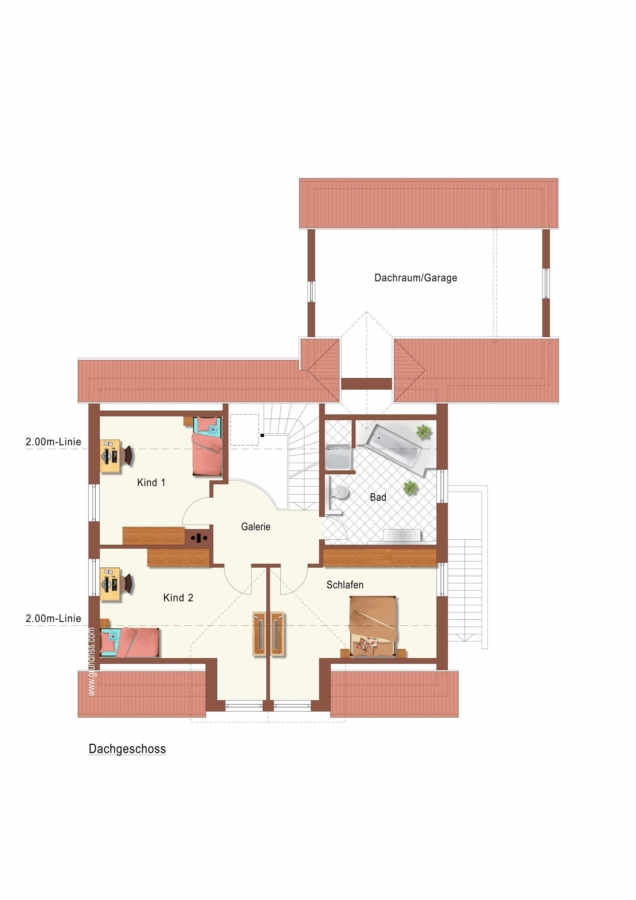 Über eine massive Holztreppe erreicht man das Obergeschoss. Hier befinden sich drei Zimmer zu Ihrer freien Gestaltung z.B. können Sie diese als Elternschlafzimmer, Kinderzimmer oder Hobbyraum einrichten. Ein großzügiges Tageslichtbad mit Dusche und Badewanne ist vorhanden.