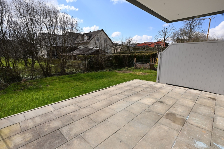 Das Herzstück der Wohnung bildet der einladende Wohnbereich mit direktem Zugang zur Terrasse. Große Fensterflächen sorgen für viel Tageslicht und schaffen eine freundliche Atmosphäre.